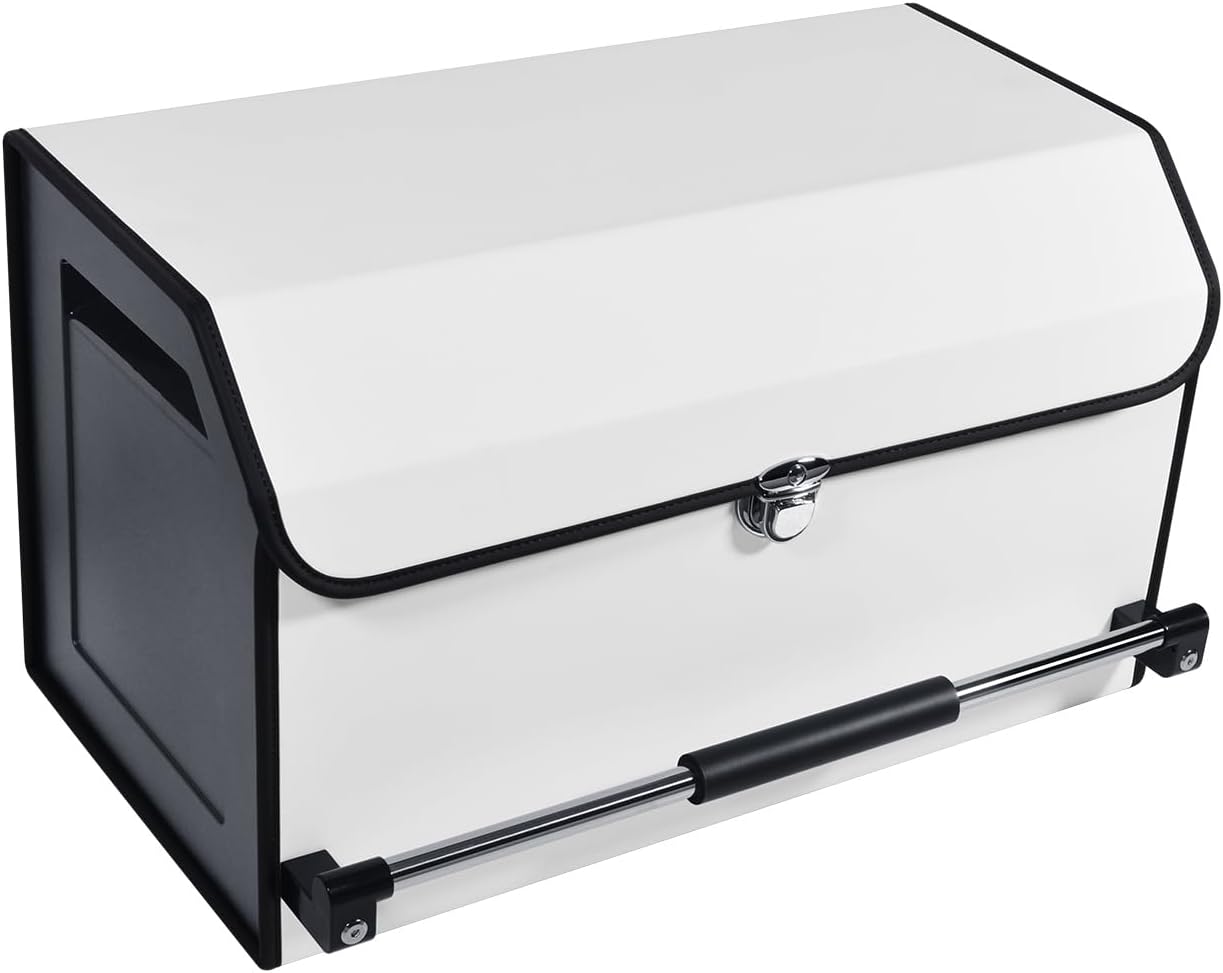 Car Trunk Organizer, Leather Collapsible Trunk Organizer for suv with Lid and Push-pull Handle Car Trunk Storage Organizer for Cars, SUV, Minivan, Truck, Sedan (White)